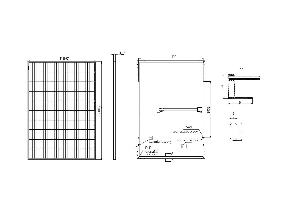 - Rozměry: 1719 × 1140 × 30 mm, ideální pro kompaktní instalace