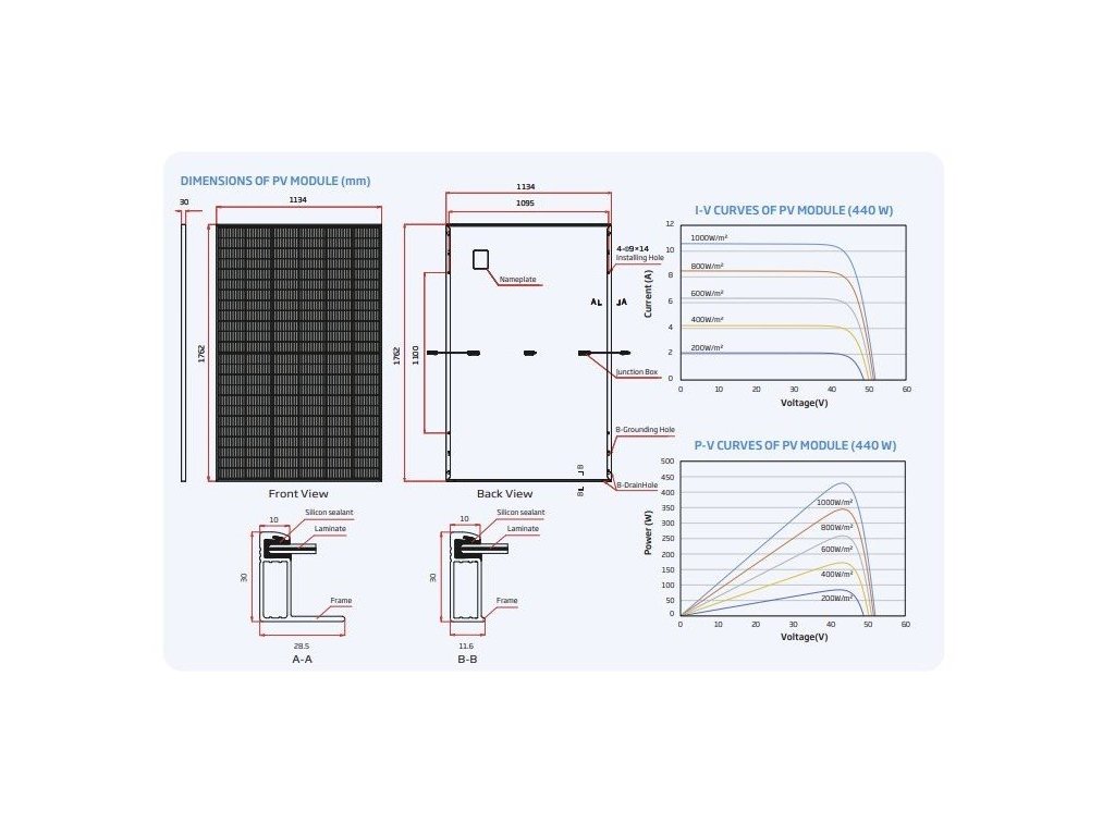 FVE Fotovoltaický solární panel PhonoSolar PS405M4-22/WH(30mm)BB s výkonem 405W je ideální volbou pro efektivní využití sluneční energie. Díky technologii mono a full black...