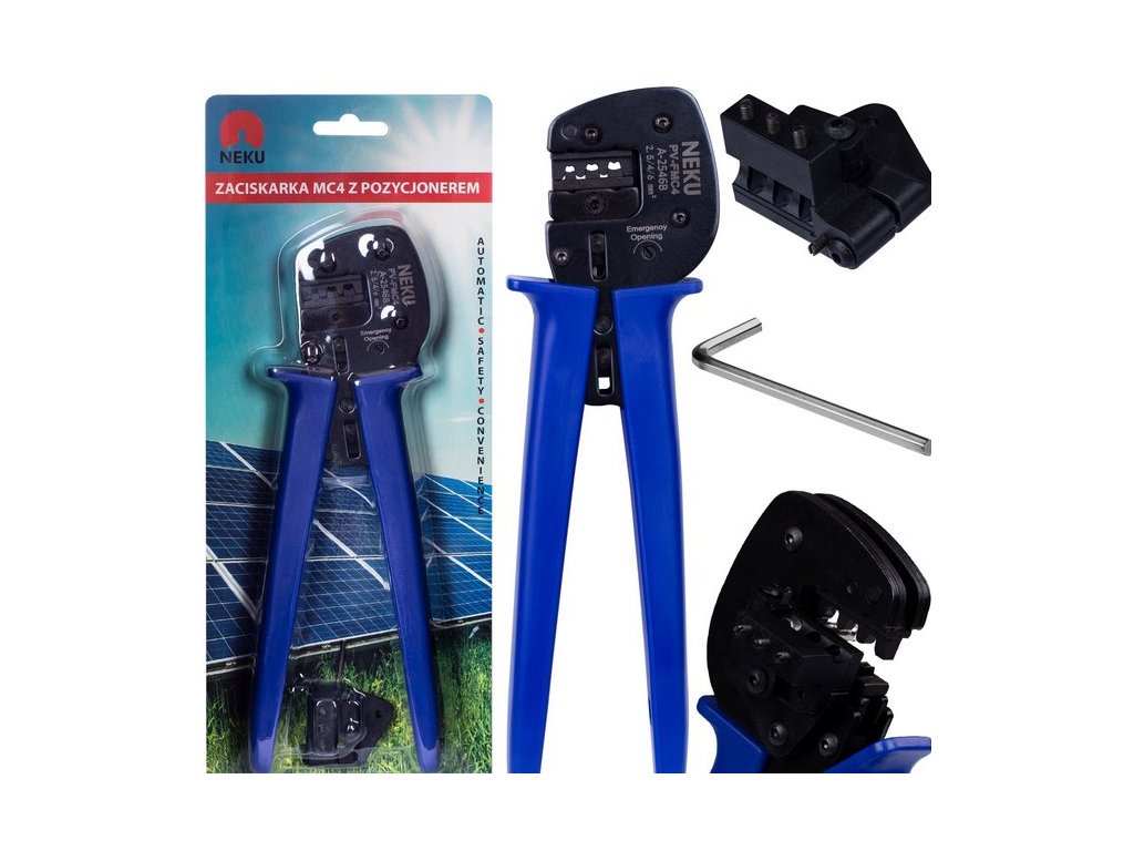 Krimpovací kleště NEKU představují nezbytný nástroj pro každého, kdo se zabývá instalací solárních systémů, ať už jde o profesionály nebo nadšené kutily. S těmito kleštěmi můžete snadno a efektivně krimpovat konektory MC4, což je klíčové pro dosažení optimálního výkonu solárních panelů. Jejich design umožňuje rychlé připojení vícežilových měděných drátů, čímž šetří váš čas a zajišťuje kvalitní a bezpečné spojení.