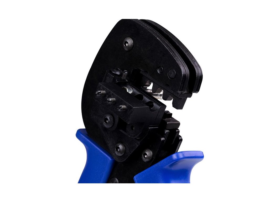 - Ráčnový systém pro snadné a přesné krimpování koncovek