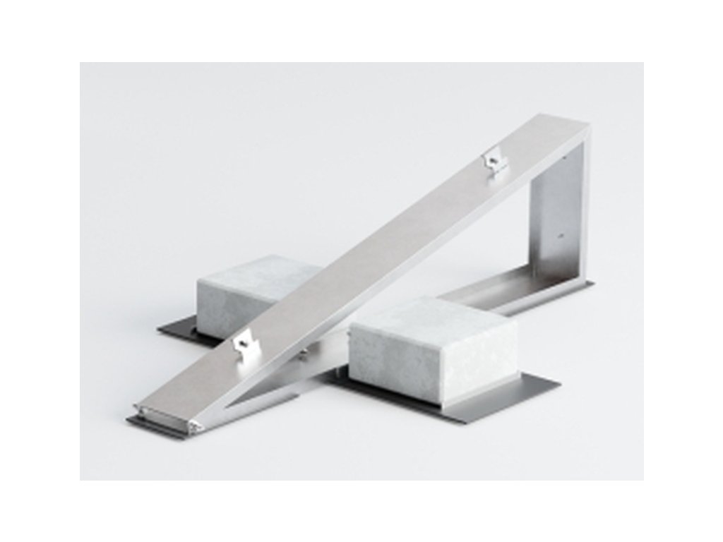 FVE konstrukce na rovnou střechu SAPRO 15st. horizontální, vyrobená z oceli potažené Magnelis, nabízí neinvazivní montáž fotovoltaických panelů pro ploché střechy.