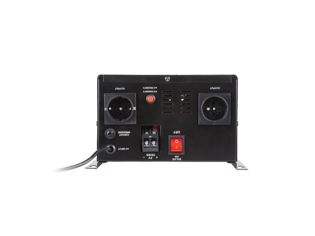 Díky přímému vstupu pro solární panely v rozsahu napětí 12 V DC - 50 V DC je možné připojit například 2x 250W fotovoltaické panely. Střídač je navržen tak, aby efektivně využíval solární energii, a to jak pro napájení zařízení vyžadujících střídavé napětí 230V, tak jako záložní zdroj energie pro zařízení, která potřebují nepřetržité napájení, jako jsou čerpadla ústředního topení nebo poplašné systémy.