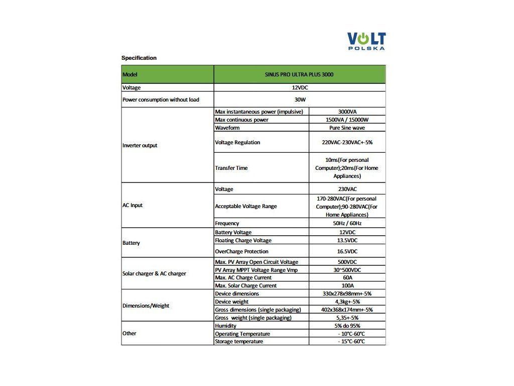 FVE Solární střídač měnič VOLT SINUS PRO ULTRA PLUS 3000 12/230V