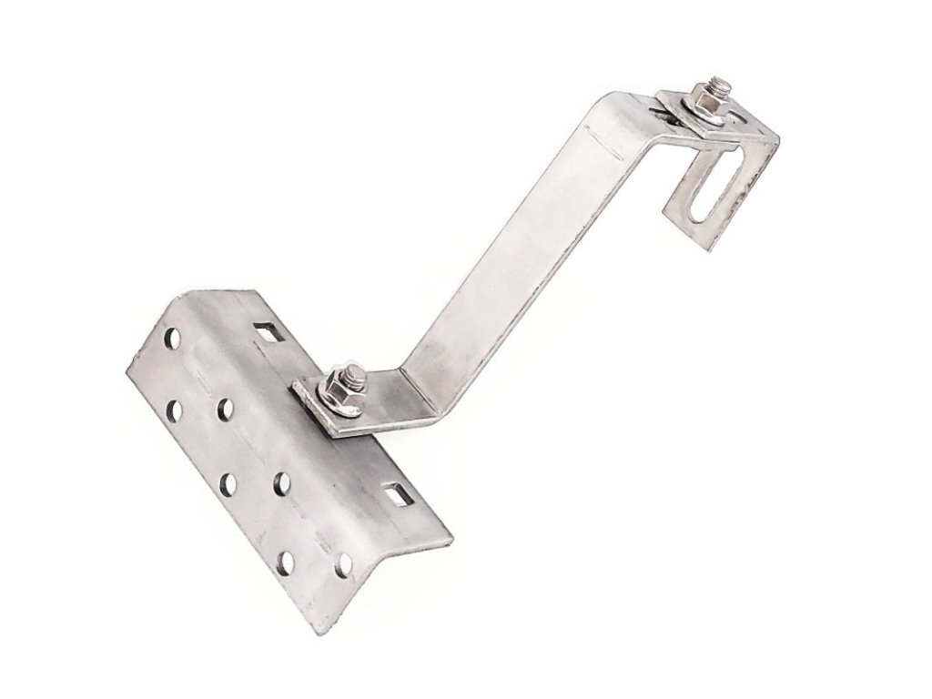 FVE střešní hák na taškovou střechu DC-L typ Vario 150 nabízí 3x regulaci výšky a je vyroben z nerezové oceli H17, ideální pro upevnění FV modulů na šikmé střechy.