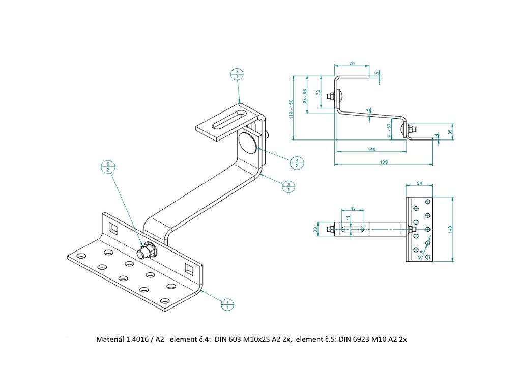 FVE univerzální střešní hák "Bobrovka" s regulací 300/200 mm 30x5, 1.4016 je ideální pro instalaci fotovoltaických systémů, vyrobený z kvalitní nerezové oceli pro dlouhou...