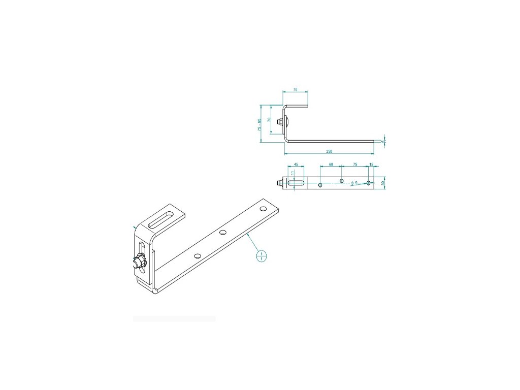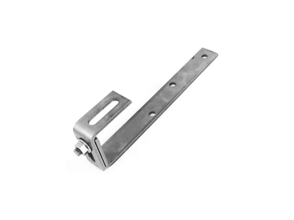 FVE univerzální střešní hák "Bobrovka" 300 mm s regulací z nerezové oceli 1.4016. Ideální pro připojení konstrukcí fotovoltaiky s nastavitelnou výškou.
