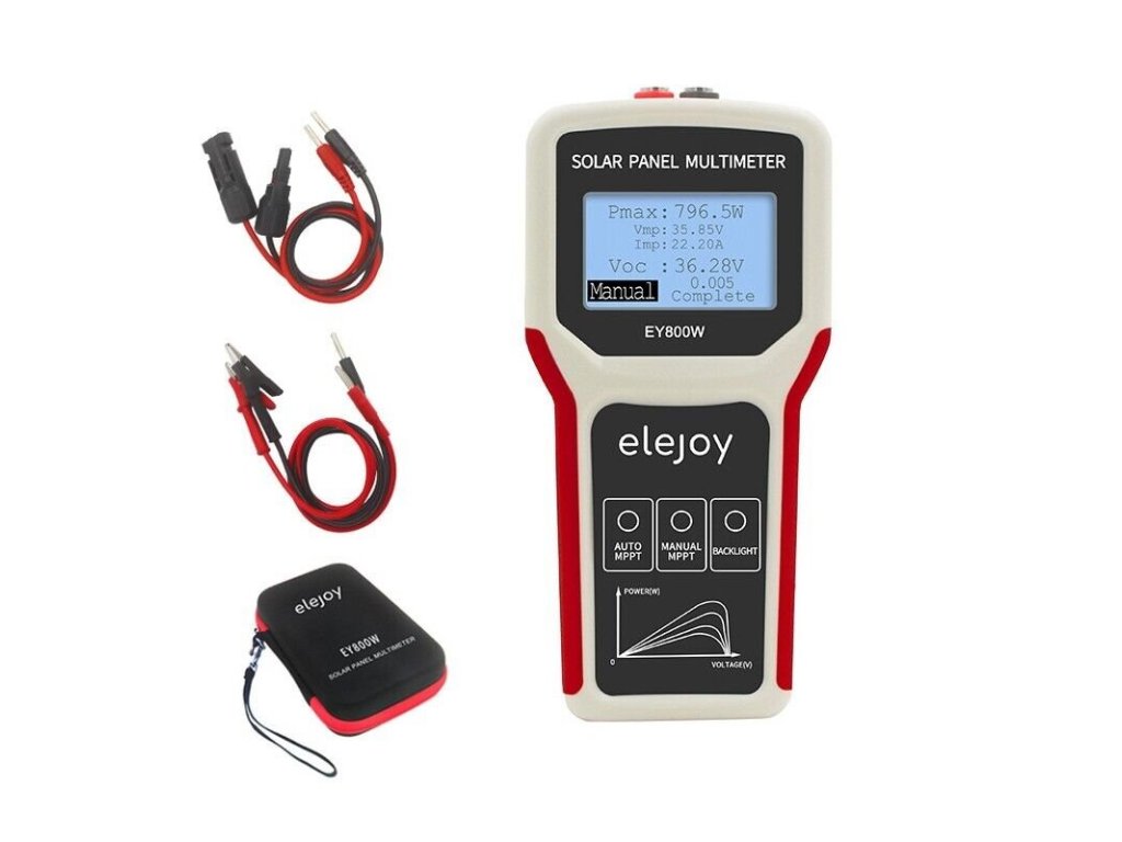 Tester ELEJOY EY-800W pro solární panely s LCD displejem a výkonem až 800W nabízí rychlé a přesné testování napájecího bodu a napětí.