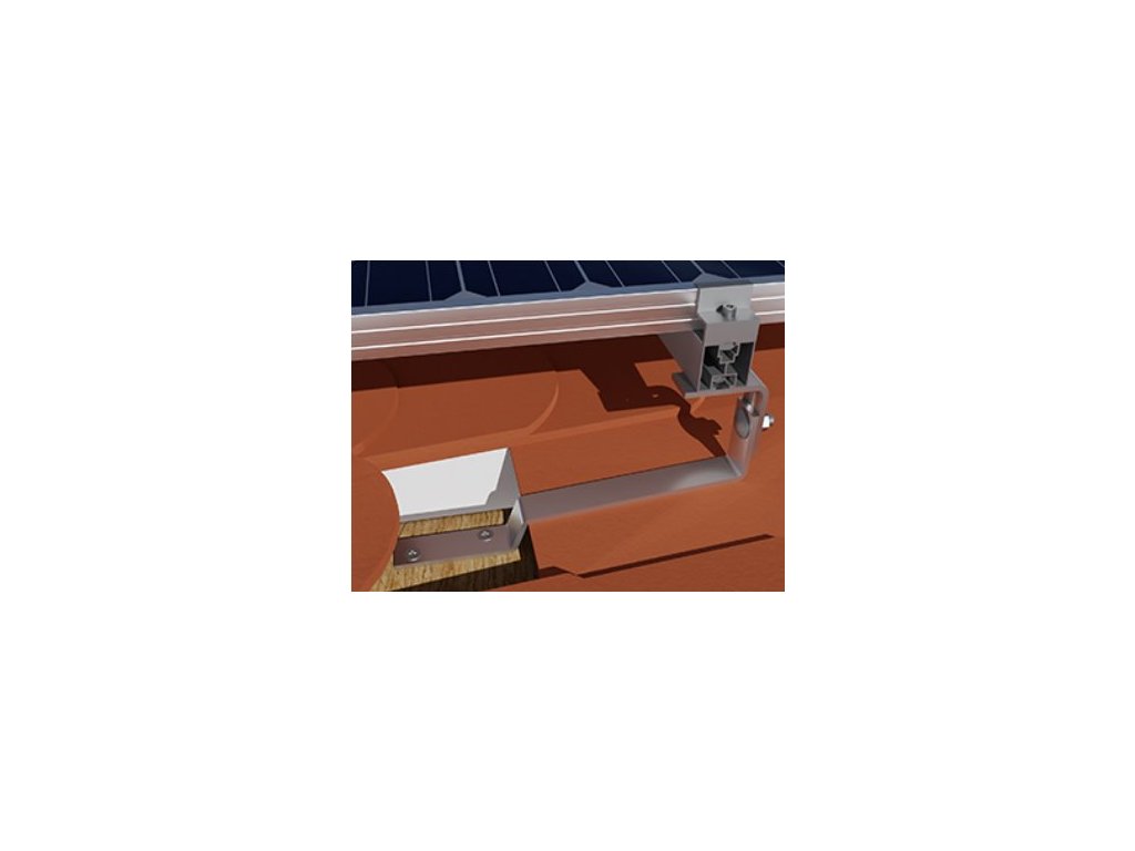FVE střešní hák na taškovou střechu DC-L typ Vario 150 nabízí 3x regulaci výšky a je vyroben z nerezové oceli H17, ideální pro upevnění FV modulů na šikmé střechy.