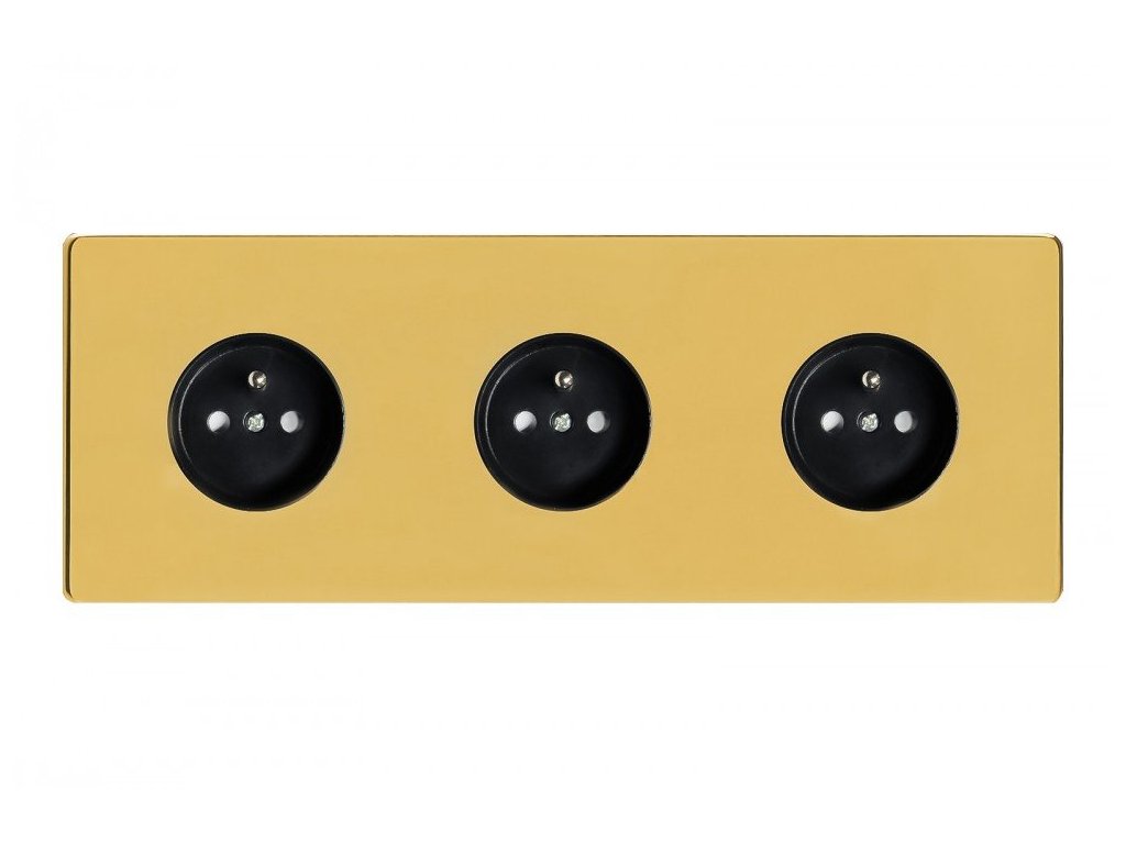 Govena Luxusní trojzásuvka s ochranným kolíkem, zapuštěná, broušená mosaz