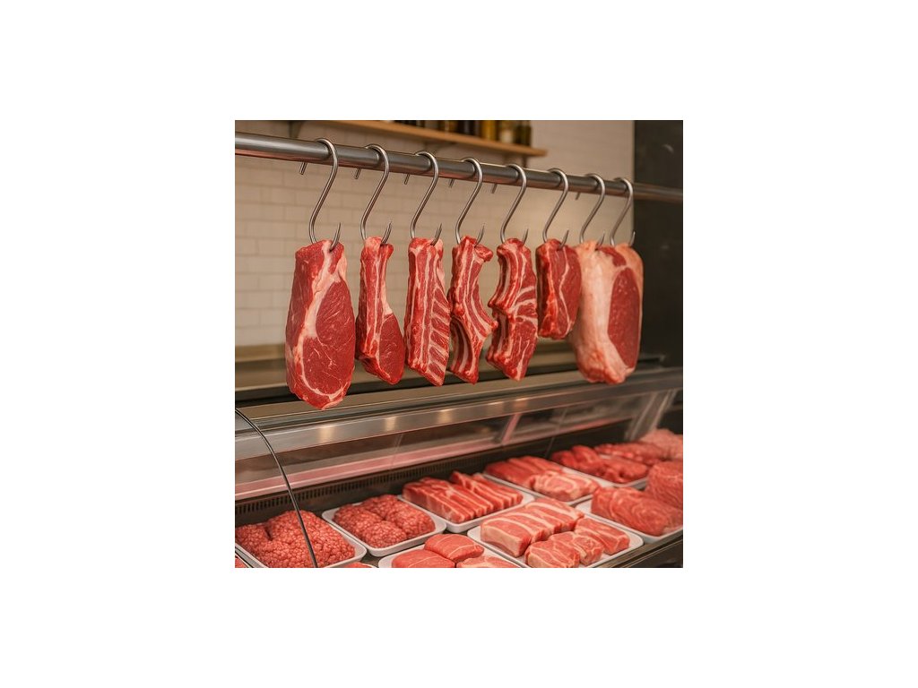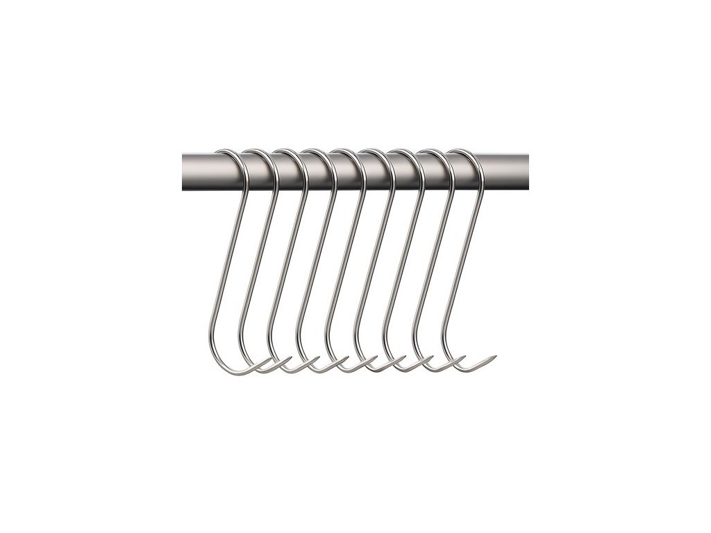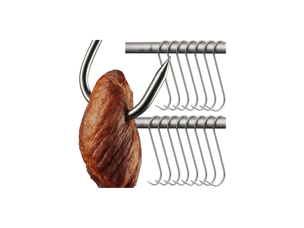 - Ostré, ve tvaru S – snadné použití - Každý udící háček má hrot, který usnadňuje propíchnutí masa nebo ryb, a díky konturovanému tvaru ve tvaru S bezpečně visí na udírně.
