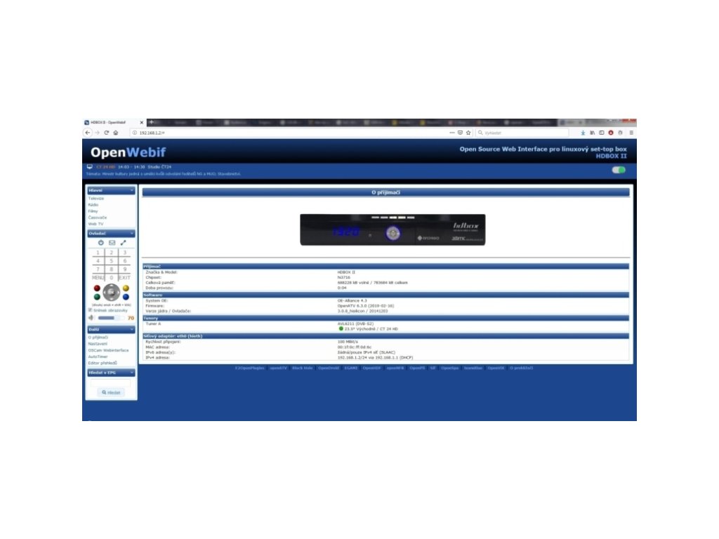Nainstalovaná spolehlivá a stabilní Enigma 2 OpenATV 6.2