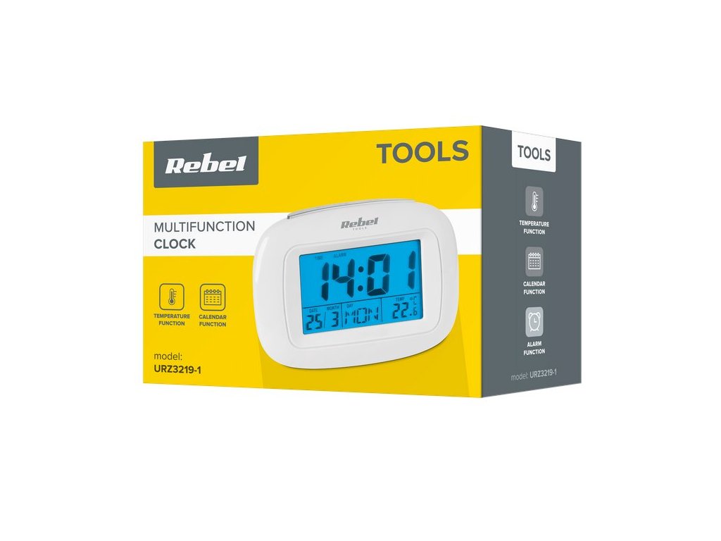 Funkce: čas, datum, den v týdnu, teplota, budík, funkce snooze, časovač