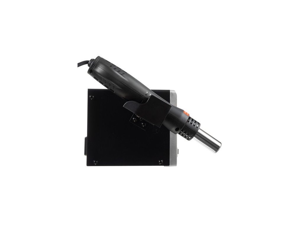 SPECIFIKACE - materiál: železo, ostatní: ABS + nerez + pryž; LCD displej; výkon: 700 W; napětí: 220V; provozní teplota: od 100 do 500 stupňů Celsia; maximální množství vzduchu 120 l/min; keramické topné jádro; délka pažby: 24 cm; rozměry stanice: 9,5 x 15,5 x 13 cm; hmotnost: 0,998 kg; hmotnost balíku: 1,243 kg.