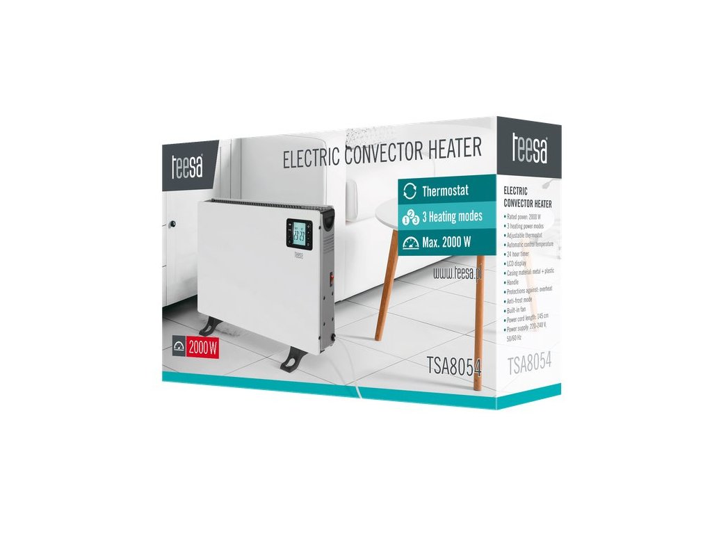 Přenosný elektrický konvektor Teesa je vybaven bezpečnostním systémem jako je automatické vypnutí v případě přehřátí. To zajišťuje dobrý spánek a pocit bezpečí při používání ohřívače.