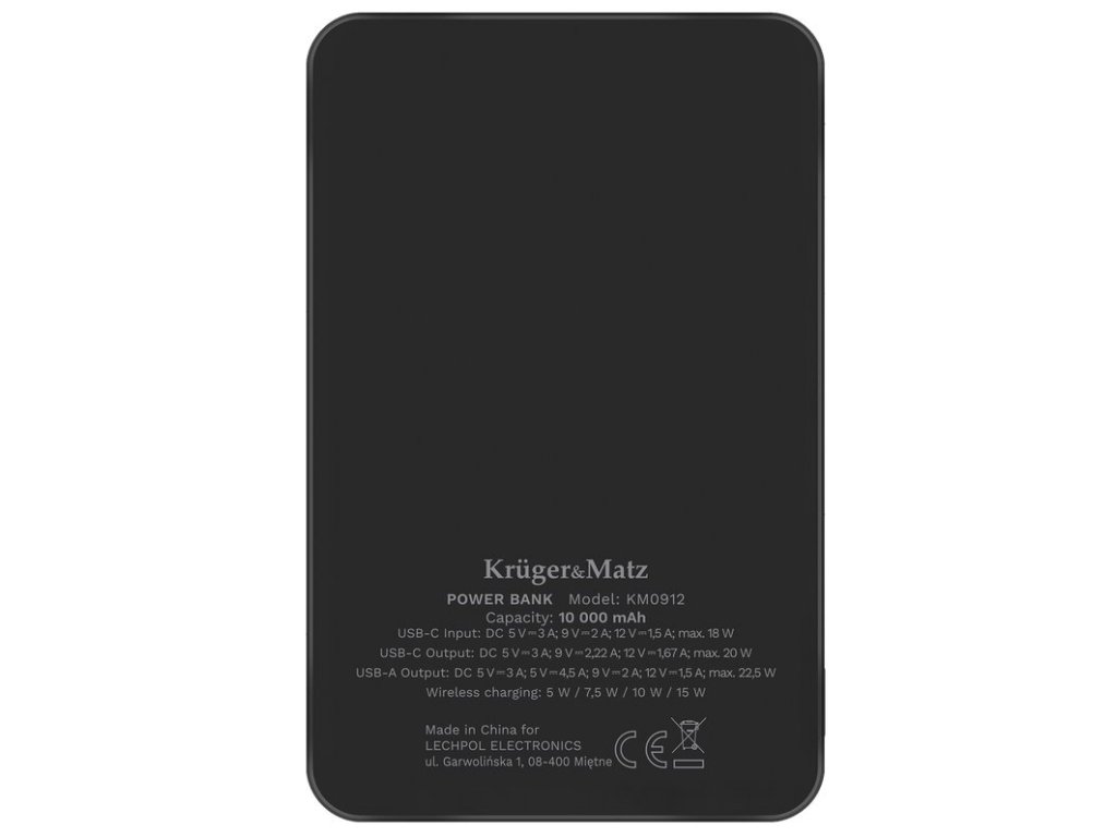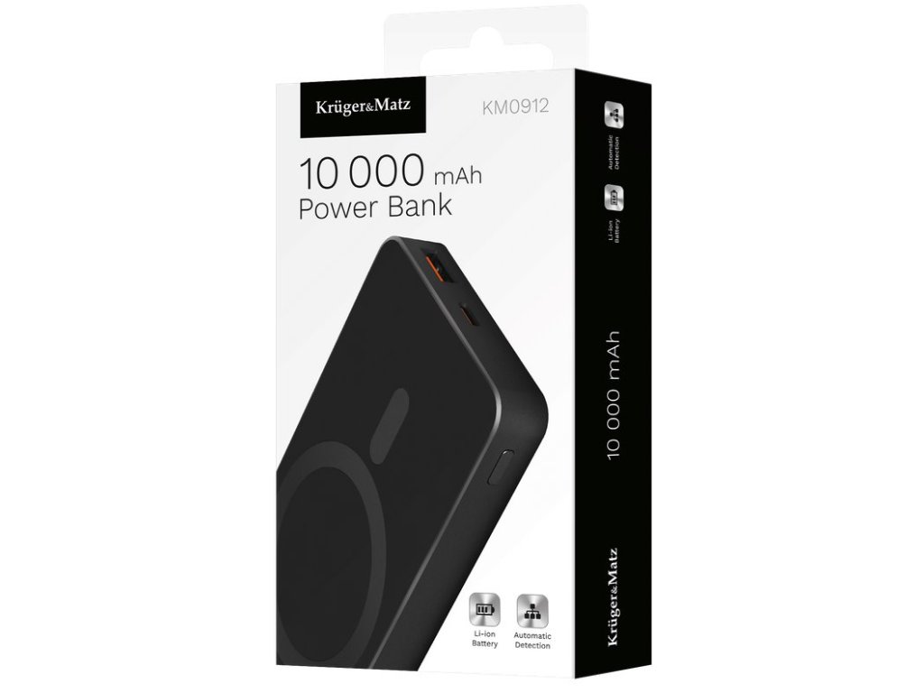 Indukční nabíječka powerbanka 10000mAh KRUGER & MATZ KM0912, s podporou MagSafe, černá