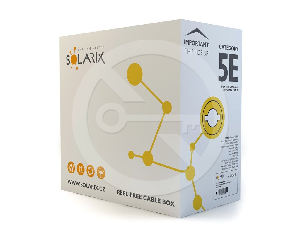 Instalační kabel Solarix CAT5E UTP PVC Eca 305m/box SXKD-5E-UTP-PVC je ideální pro horizontální rozvody s podporou 1000BaseT a širokým pásmem 100 MHz. Jeho odolné PVC plášť a...