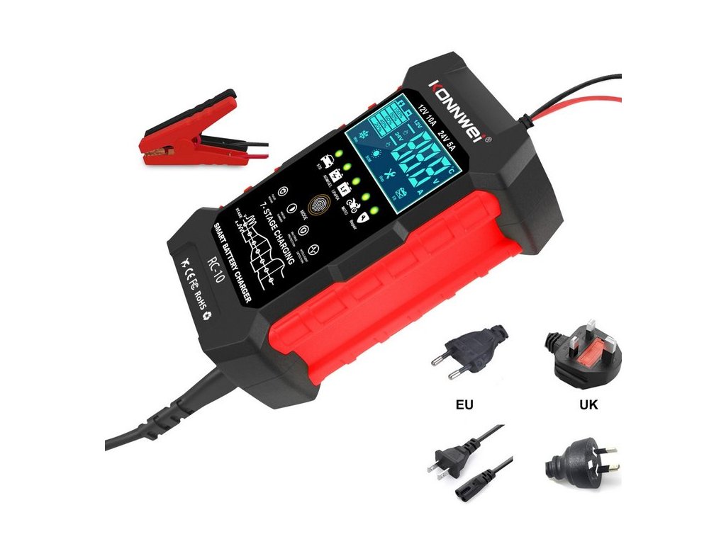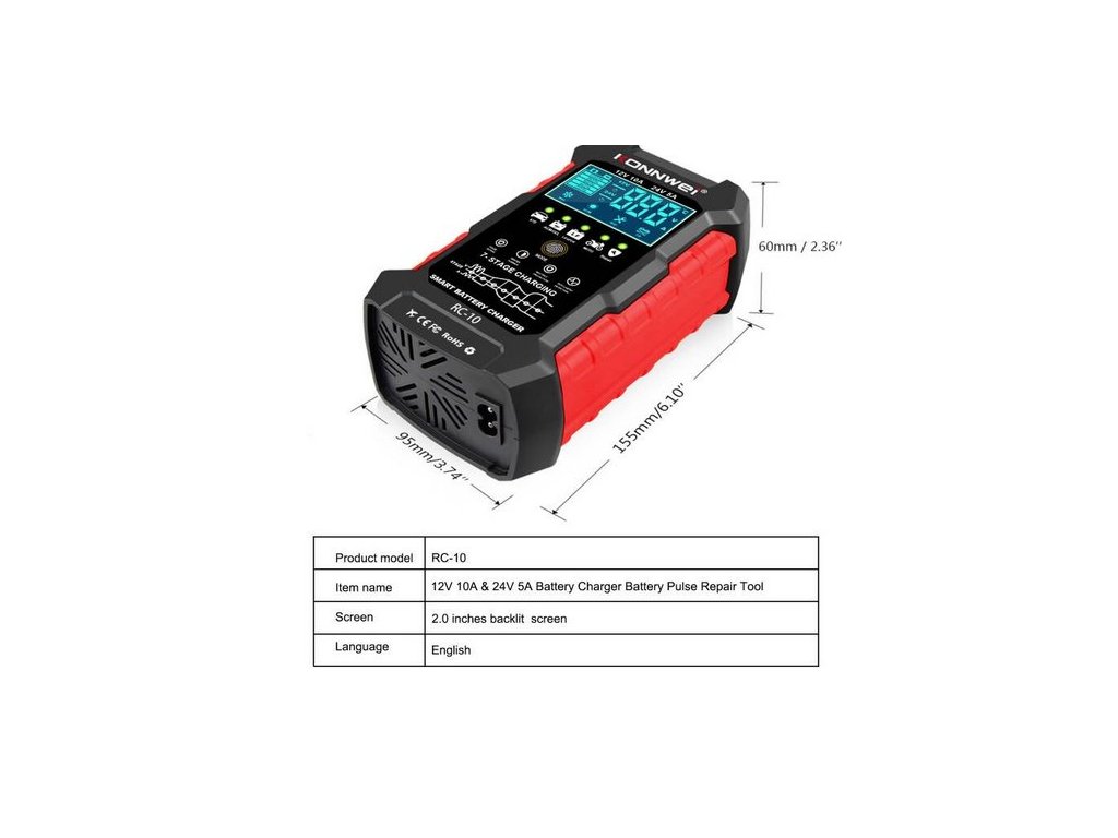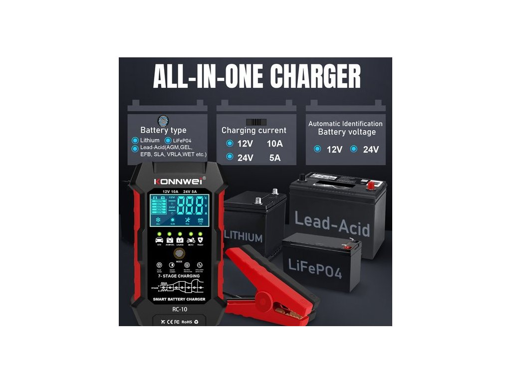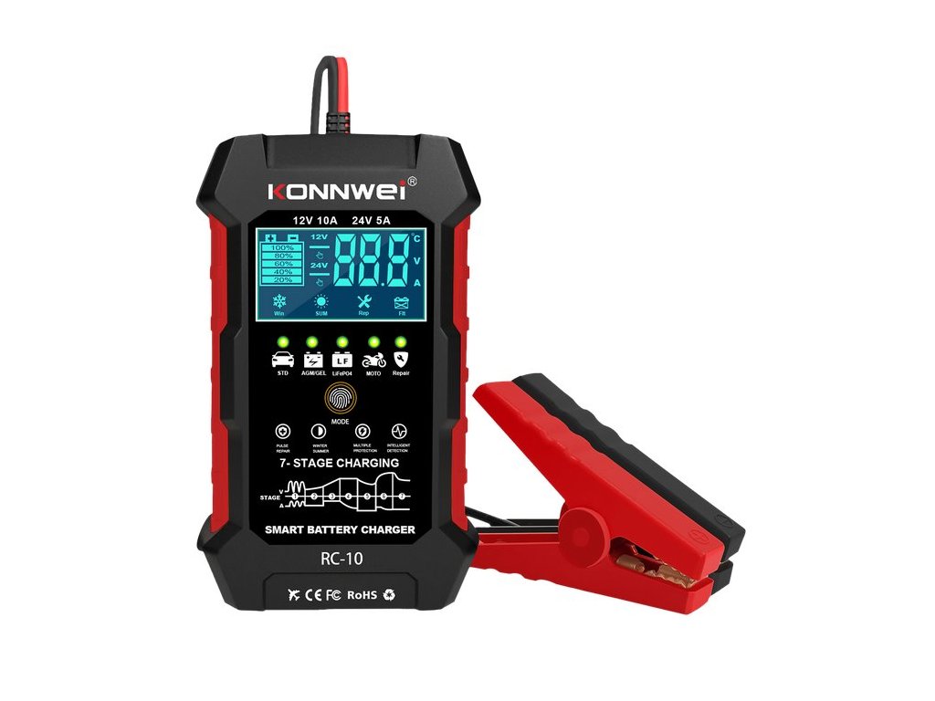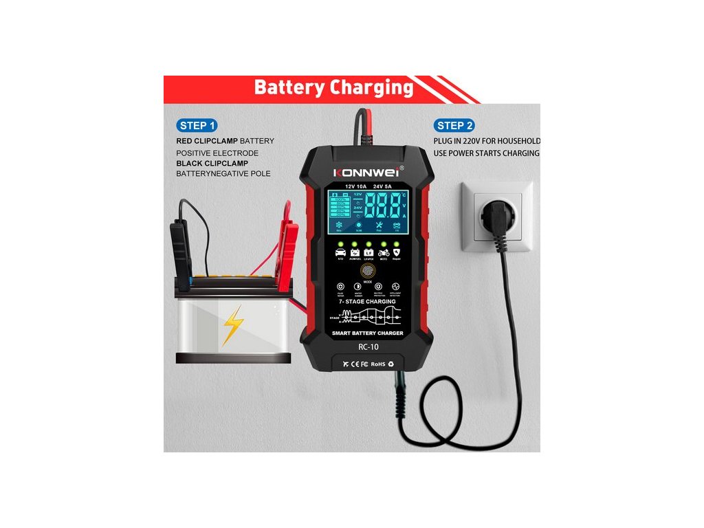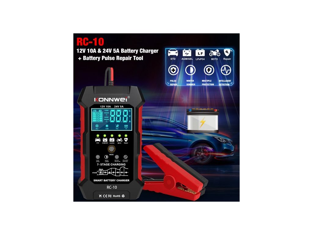 Inteligentní nabíječka akumulátorů KONNWEI RC-10 s funkcí desulface je ideálním řešením pro všechny, kteří hledají efektivní a spolehlivou nabíječku pro různé typy akumulátorů. Díky pokročilé technologii desulfatace prodlužuje životnost baterií a zajišťuje optimální výkon. Tento produkt je určen pro široké spektrum uživatelů, od majitelů osobních automobilů po profesionální mechaniky, kteří potřebují kvalitní nabíječku pro své vozidla.