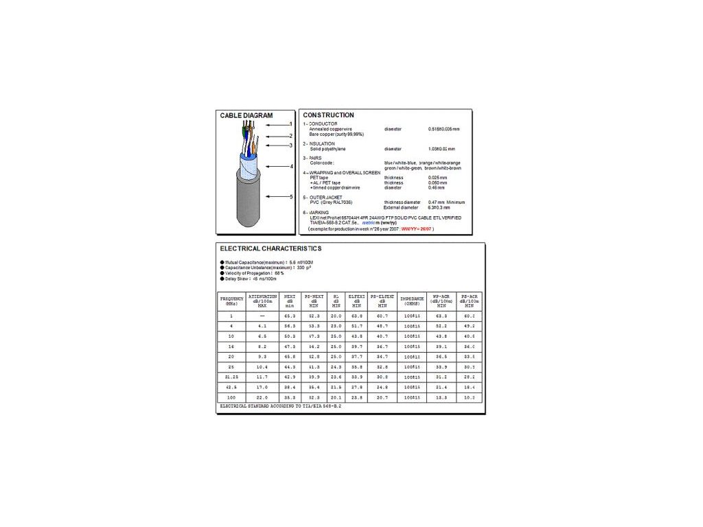 Vlastnosti kabelu FTP CAT5e/SYKFY PVC 4PAR/BCU 305m