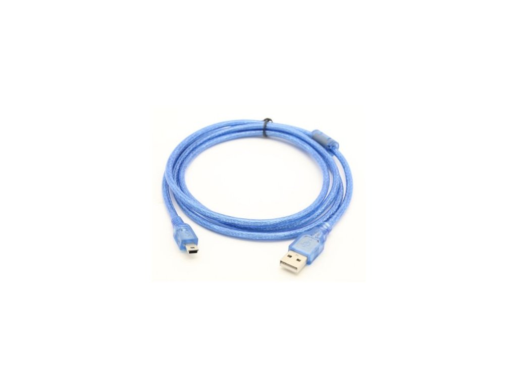Kabel USB 2.0 konektor USB A / MINI-USB B (5 pinů) 1m modrý, feritové stínění