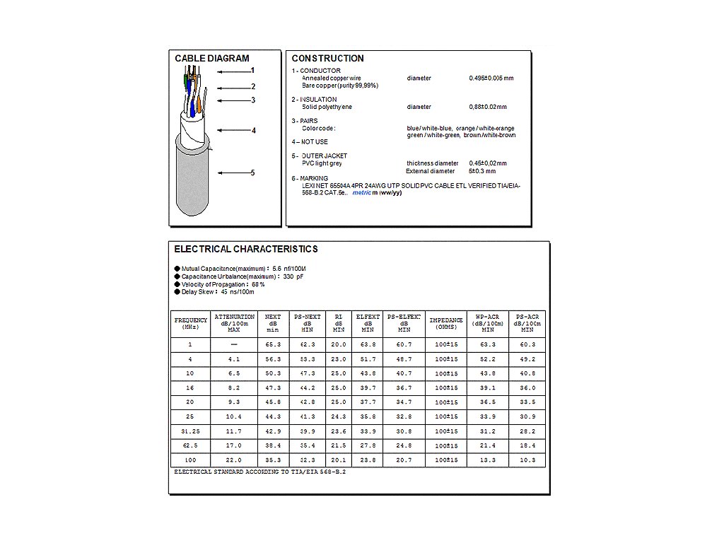 Vlastnosti kabelu UTP CAT5E CCA