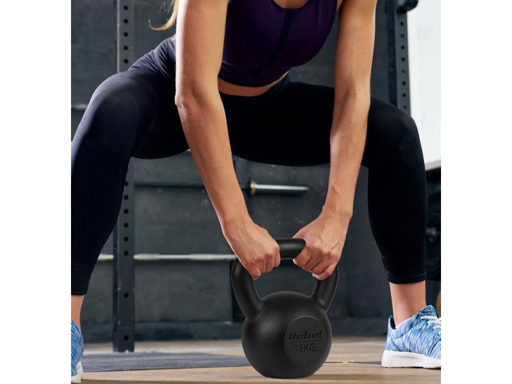 Litinová kettlebell Rebel Active nabízí neuvěřitelnou rozmanitost cvičení. Můžete provádět tradiční cviky, jako jsou dřepy a mrtvé tahy, ale s kettlebellem můžete také experimentovat s různými pohyby pro posílení celého těla. Je to skvělý nástroj pro procvičování paží, zad, břicha a hrudníku.