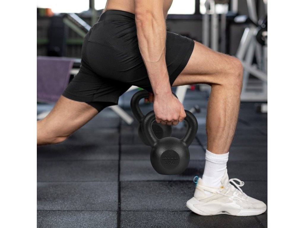 Kettlebell má rukojeť, která poskytuje bezpečný a pohodlný úchop, což je klíčové pro dynamické pohyby. Okénko rukojeti poskytuje dostatek prostoru pro vaše ruce, což umožňuje plynulé a pohodlné přechody mezi cviky. Odolná konstrukce a pohodlné používání