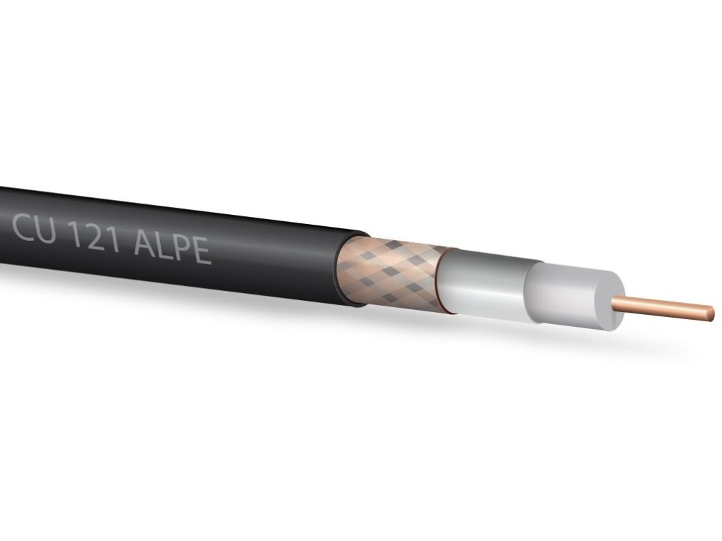 Koaxiální kabel 121 CU ALPE 150m / 5mm černý cívka , gel