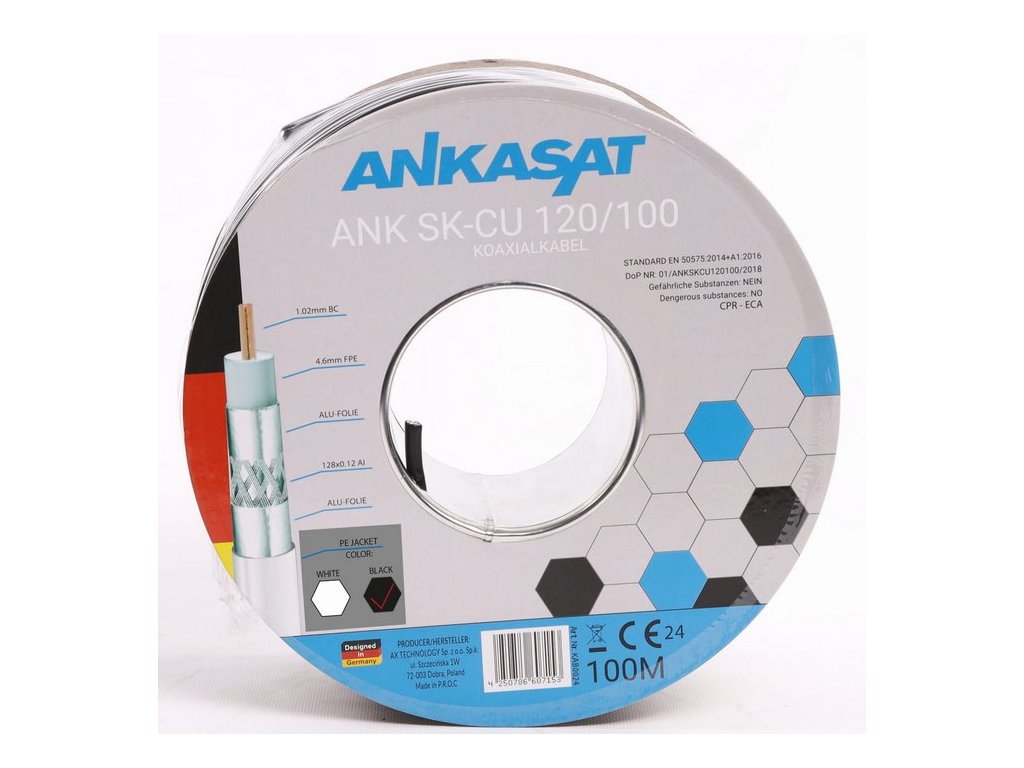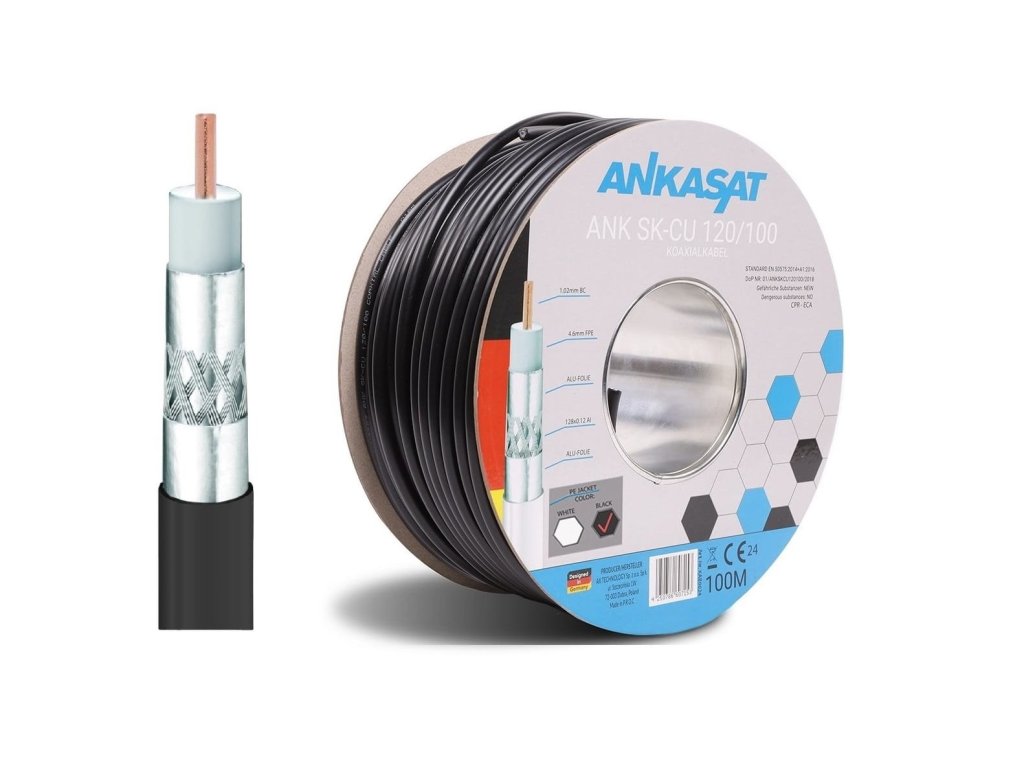 Anténní kabel Koaxiální kabel 4K TV/SAT Ankasat ANK SK-CU 120/100mb Značka Ankasat
