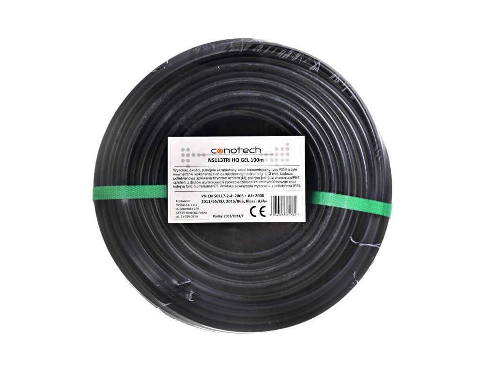 Koaxiální kabel CONO-TECH RG6 NS113TRI HQ , 1,13mm, CU/AL , Trishield, PE, 6,8mm, GEL 100m, fólie