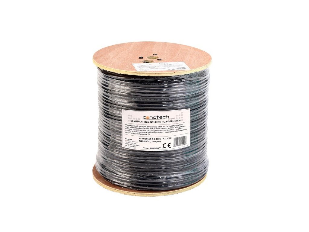 Koaxiální kabel CONO-TECH RG6 NS CB113 1,13mm CU, Trishield, PE, 6,8mm, GEL 300m černý