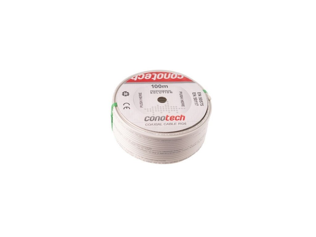 Koaxiální kabel CONO-TECH RG6 NS100TRI , 1mm, CU/AL , Trishield, PVC, 6,8mm, 100m, fólie