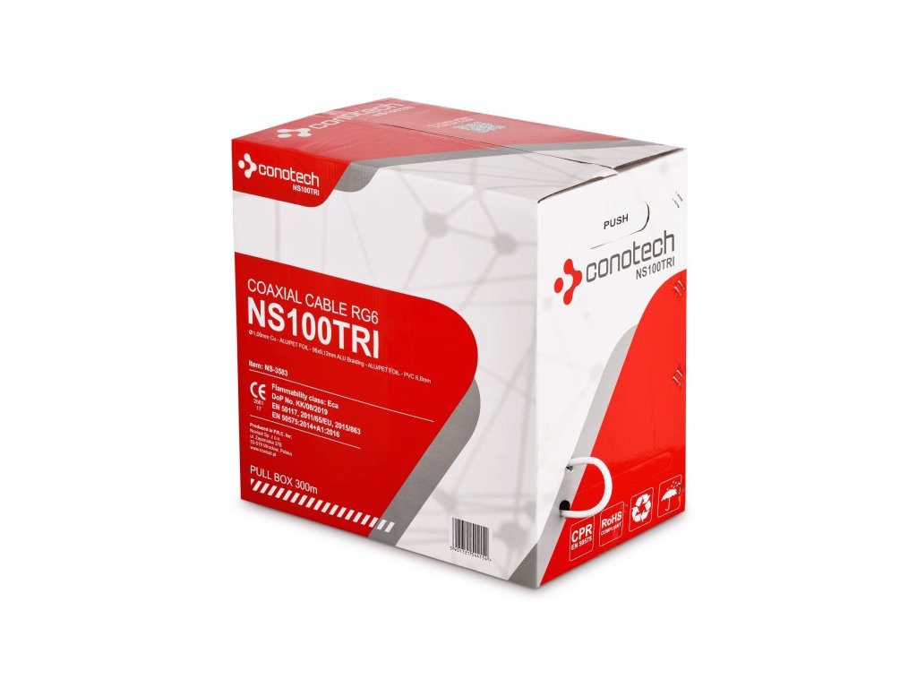 Koaxiální kabel CONO-TECH RG6 NS100TRI , 1mm, CU/AL , Trishield, PVC, 6,8mm, 300m, fólie