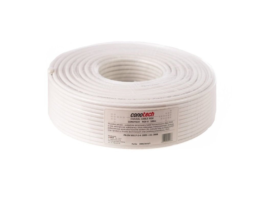 Koaxiální kabel CONO-TECH RG6U 1,02 mm CCS/AL, PVC, 6,8mm, 100m, fólie