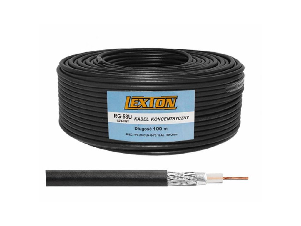 Koaxialní kabel Lexton LXK506CU RG58, 5mm, 50 Ohm, 100m, černý