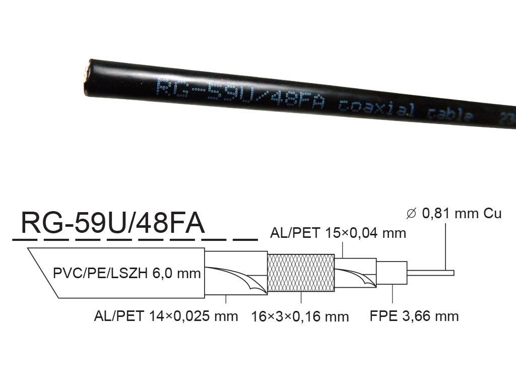 Koaxiální kabel RG-59U/48FA 305m PVC 6mm bílý cívka , stínění: AL fólie + opředení 48x0,12 mm, dielektrikum: 3,90 mm FPE - pěnové , středový vodič: 0,81 mm BCU. Balení a...