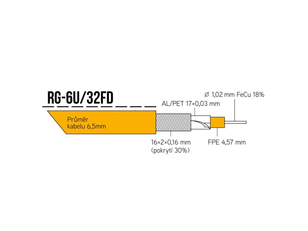 Koaxiální kabel RG-6U/32FD 10m PVC 6,5 mm manžeta