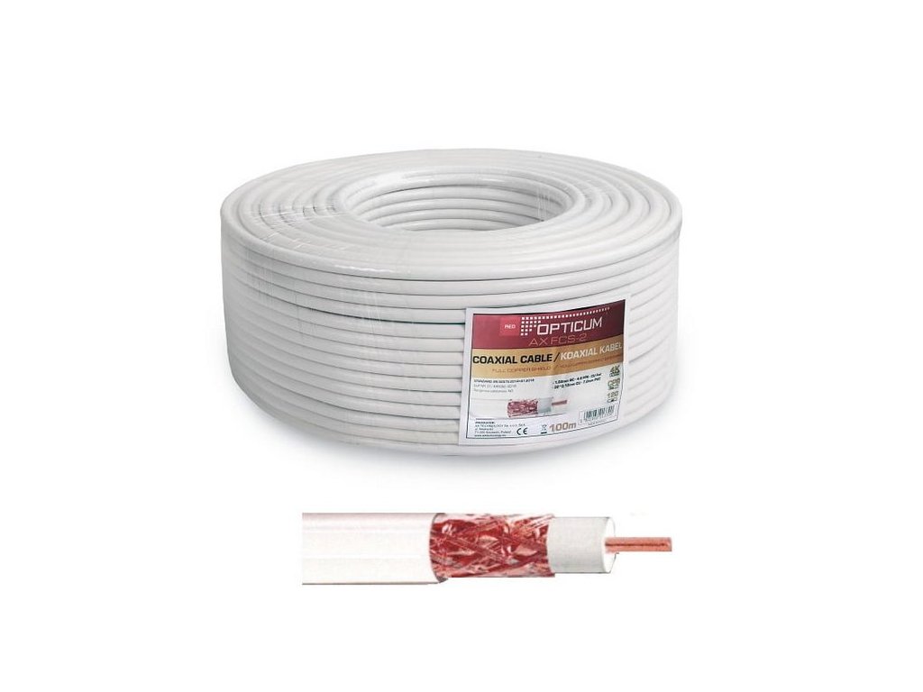 Koaxiální kabel Opticum RG6 L5S 100m, bílý, cívka