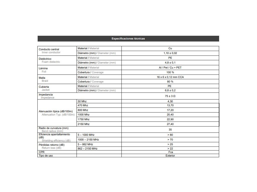 Koaxiální kabel čtyřvrstvý RG6 4S, 120dB 100m, čtyřvrstvý 7,02 mm. Balení a minimální expediční jednotka 100 m, cena je uvedena za 1 m.