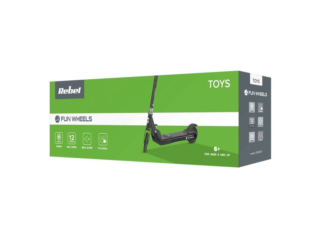 Koloběžka elektrická REBEL Fun Wheels ZAB0031BC dětská, černá