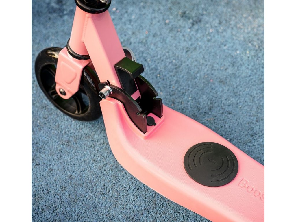 Dětská elektrická koloběžka v platformě zabudovaný pohon nohou, ale na rozdíl od tradičních modelů elektrických koloběžek se vozidlo rozjede až po odsunutí. To výrazně zvyšuje bezpečnost a zvyšuje pohodlí při řízení.