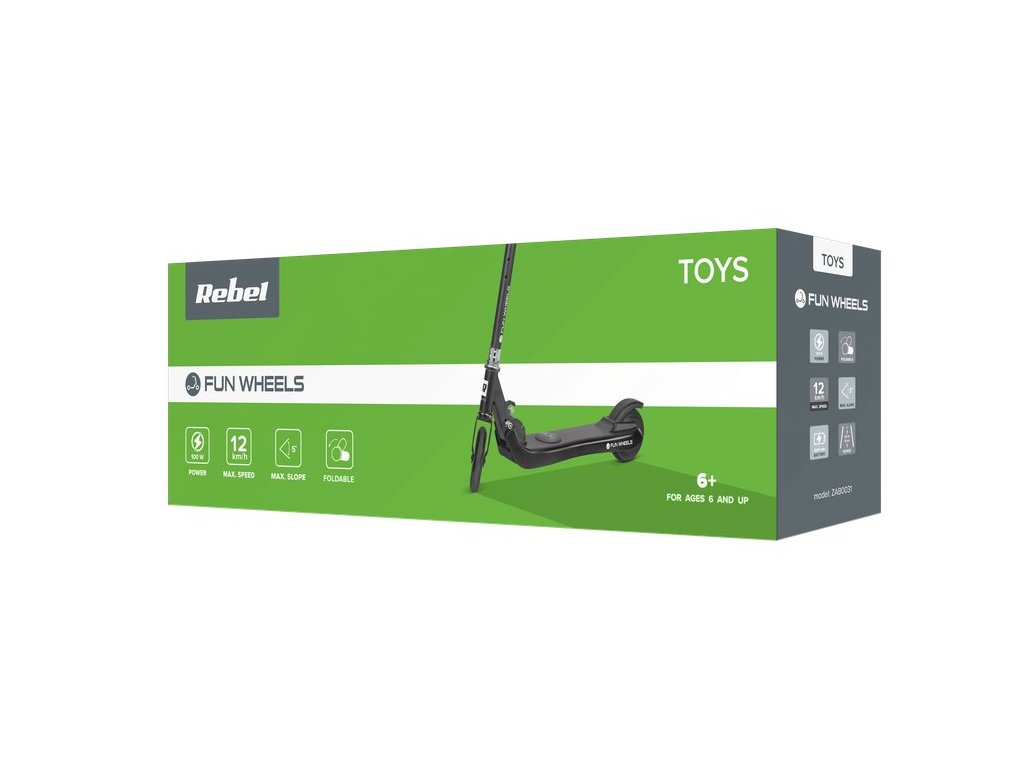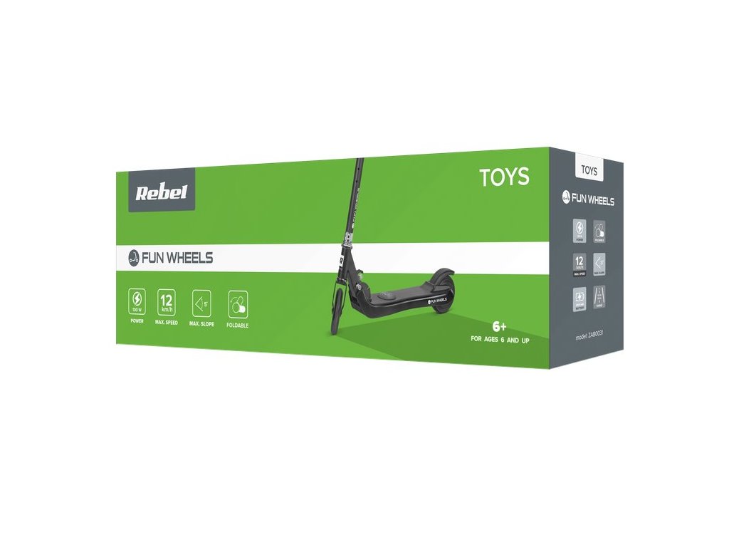 Vaše dítě sní o elektrické koloběžce, ale nejste o této myšlence přesvědčeni? Ideální volbou pro začátek bude model Rebel Fun Wheels, který mohou používat děti od 6 let. Maximální rychlost je 12 km / h. To stačí na to, aby je řízení bavilo a zároveň vás udrželo v bezpečí. Stojí za zmínku, že maximální zatížení je 50 kg, takže tato koloběžka bude sloužit dlouho - i pro starší děti.