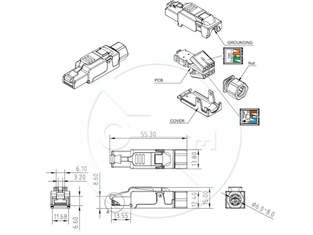 Konektor Solarix RJ45 CAT6A STP 8p8c stíněný skládaný na drát KRJS45/6ASLD je ideální pro náročné aplikace s 10GBaseT. Maximální tloušťka kabelu 8 mm a životnost 1000 zapojení...