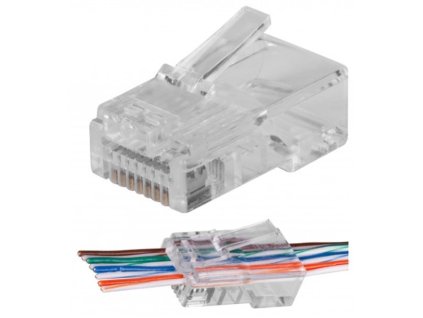 Konektor NEKU UTP CAT5 RJ45 8P8C s průchozím systémem Pass Through zajišťuje přesné krimpování a snadnou instalaci kroucených párů kabelů v počítačových sítích.