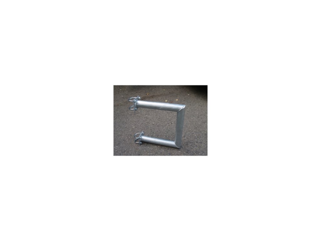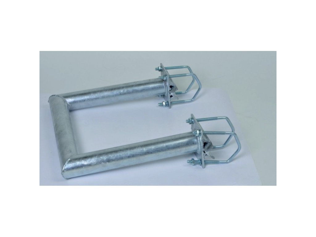 Trubka o průměru 35 mm a délce 300 mm s pásem 240x50x5 mm a čtyřmi otvory pro ukotvení.Povrchově upraveno galvanickým zin