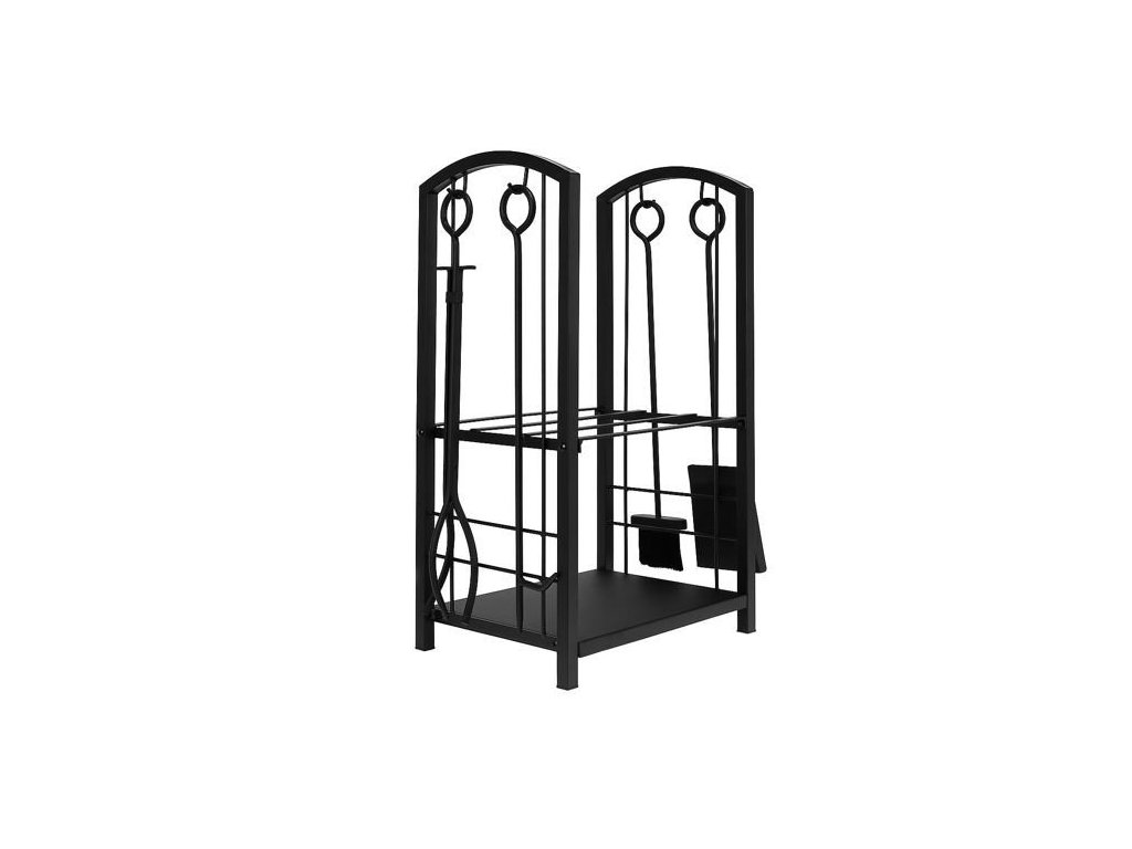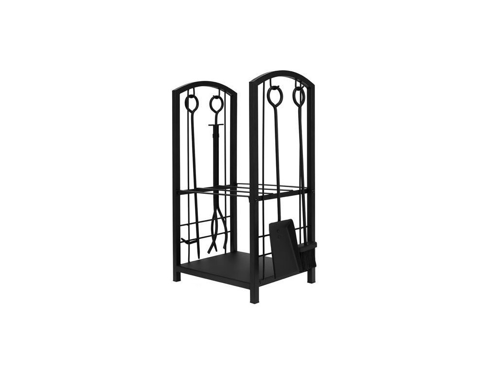 Koš na dřevo a krbové nářadí 30x40x73cm černá Kaminer 8785