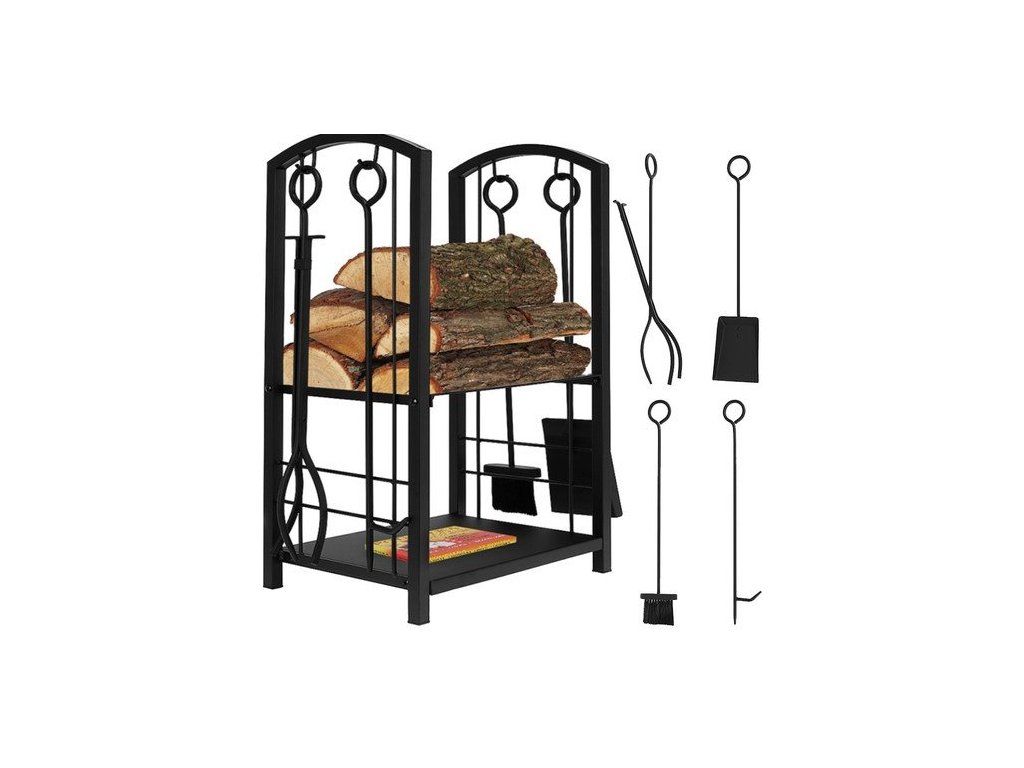 Tento praktický koš na krbové dřevo z kvalitně zpracovaného materiálu vám umožní uložení dřeva hned vedle krbových kamen. Sada obsahuje také krbové nářadí.