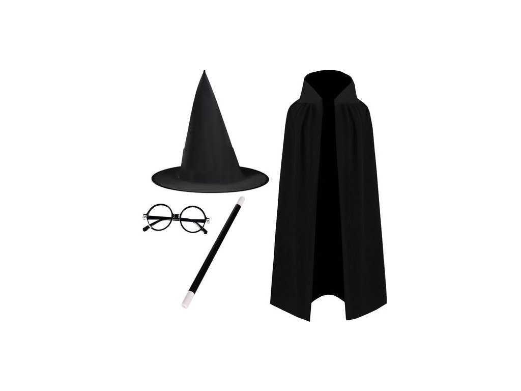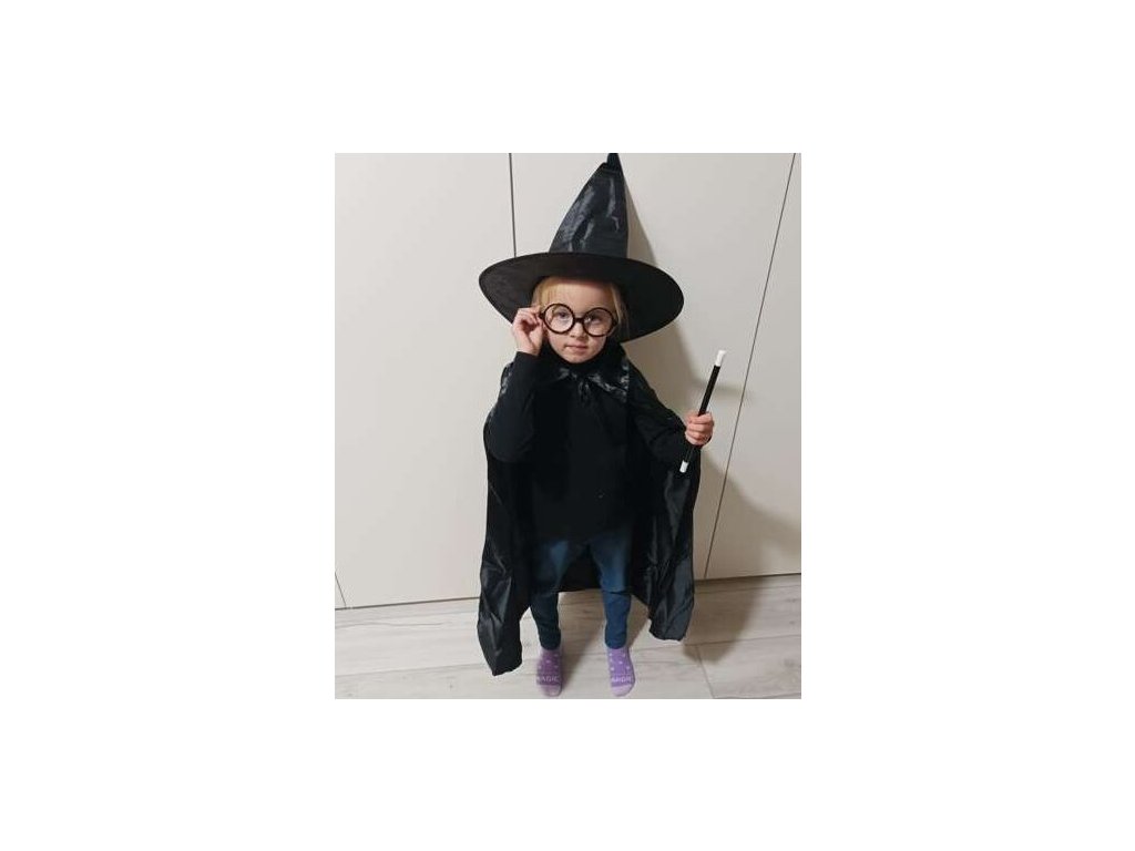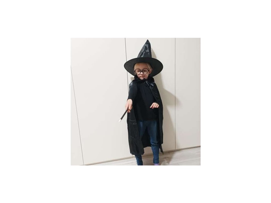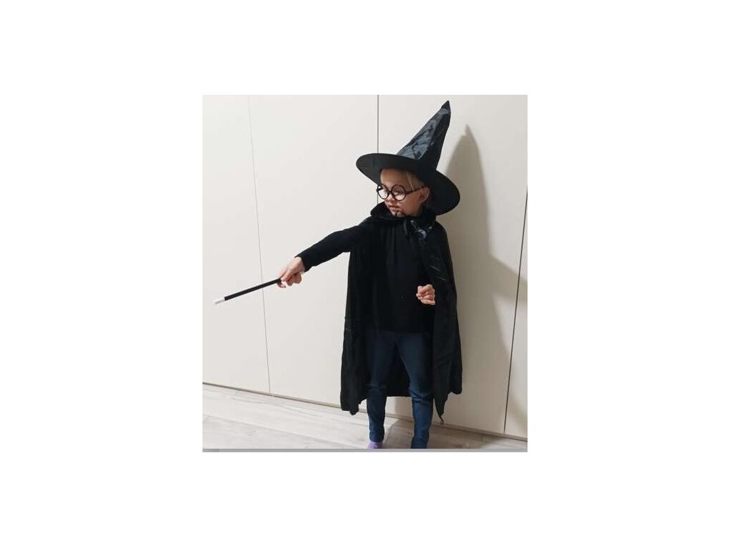ČERNÝ PLÁŠŤ - vyrobeno z vysoce kvalitního, splývavého materiálu. Je dlouhé a vzdušné, elegantně a tajemně splývají po zádech . Malému kouzelníkovi dodává drama a tajemno. Pelerína má límec, který lze pro lepší efekt umístit na ramena nebo otočit nahoru. Díky pečlivě dokončeným stuhám můžete pláštěnku připevnit a zabránit jejímu sklouznutí při provádění bezpočtu kouzel.