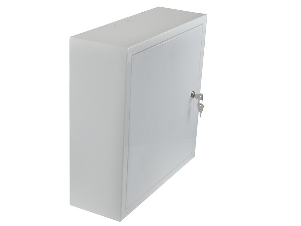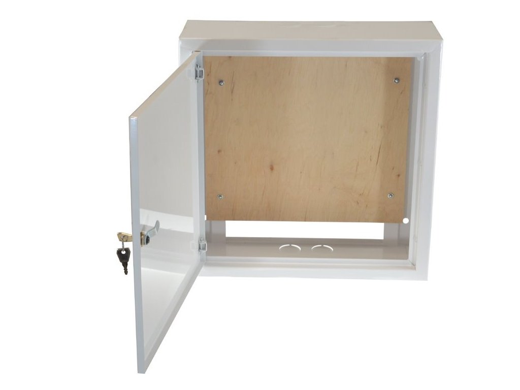 Materiál z pozinkovaného ocelového plechu a práškový nátěr zaručují odolnost. S válcovým zámkem a překližkovou stěnou je ideální pro ochranu elektroniky.