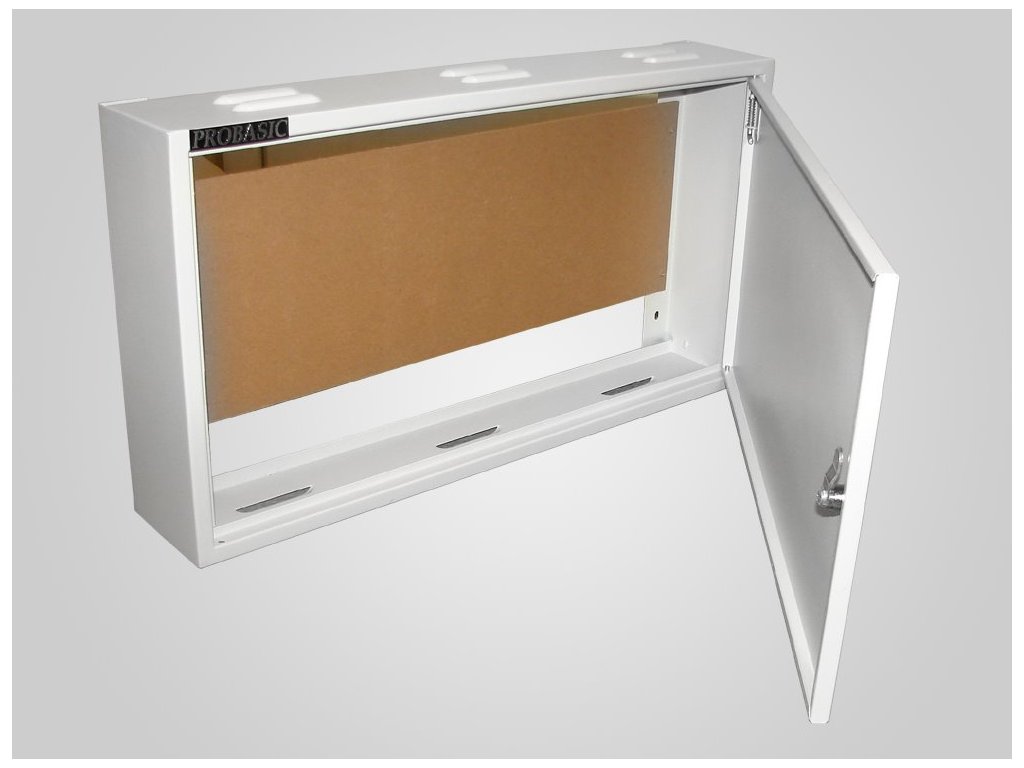 Kovový rozváděč montážní skříň o rozměrech 540x420x180 mm z práškově lakované oceli v lesklé bílé barvě je ideální pro bezpečnou instalaci zařízení.