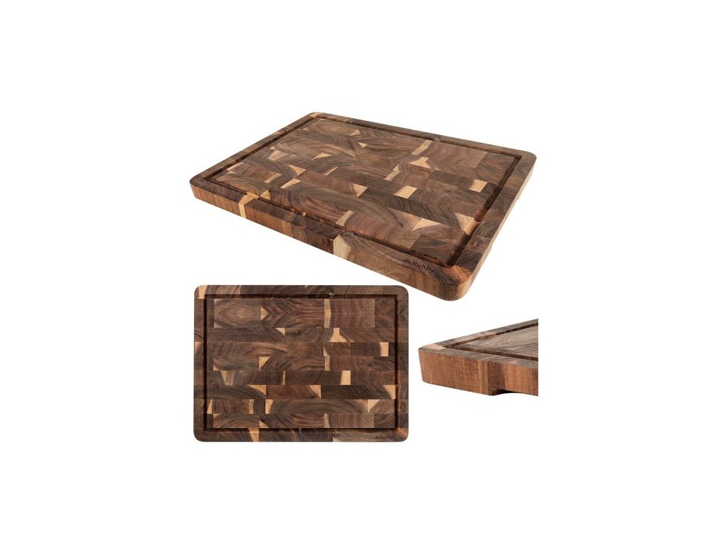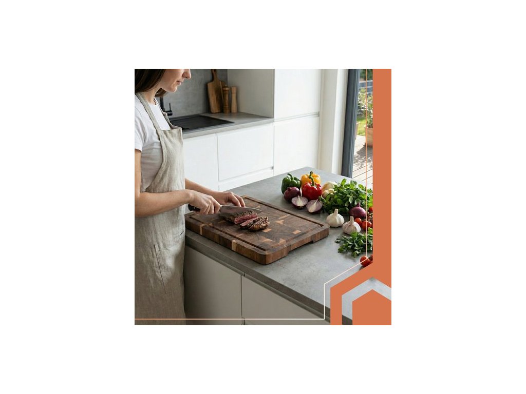 Velké a masivní kuchyňské prkénko z akáciového dřeva je určené pro každodenní krájení i elegantní servírování. Díky rozměru 43 × 33 cm a extra tloušťce 3 cm je velmi stabilní a odolné. Prkénko má drážku pro zachycení šťávy a rukojeti na spodní straně pro pohodlné přenášení. Akáciové dřevo je tvrdé, dobře snáší vlhkost, neabsorbuje pachy ani vodu a při správném používání je šetrné k nožům.